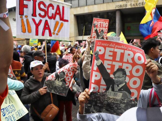 Diferentes organizaciones gremiales y sindicales se reunieron frente a la Corte Constitucional para exigir la elección de la fiscal y en apoyo al gobierno de Gustavo Petro. Foto: Colprensa.