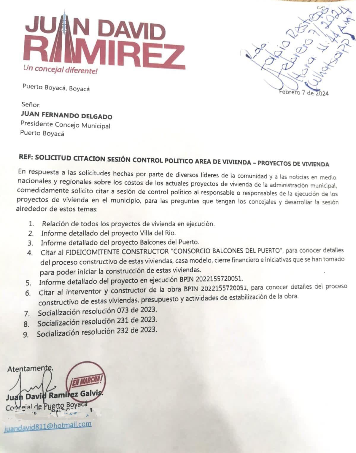 Frente a este tipo de situaciones que estarían ocurriendo de manera reiterada, el Concejo Municipal decidió citar a control político al responsable o los responsables de la ejecución de los proyectos de vivienda en el municipio.