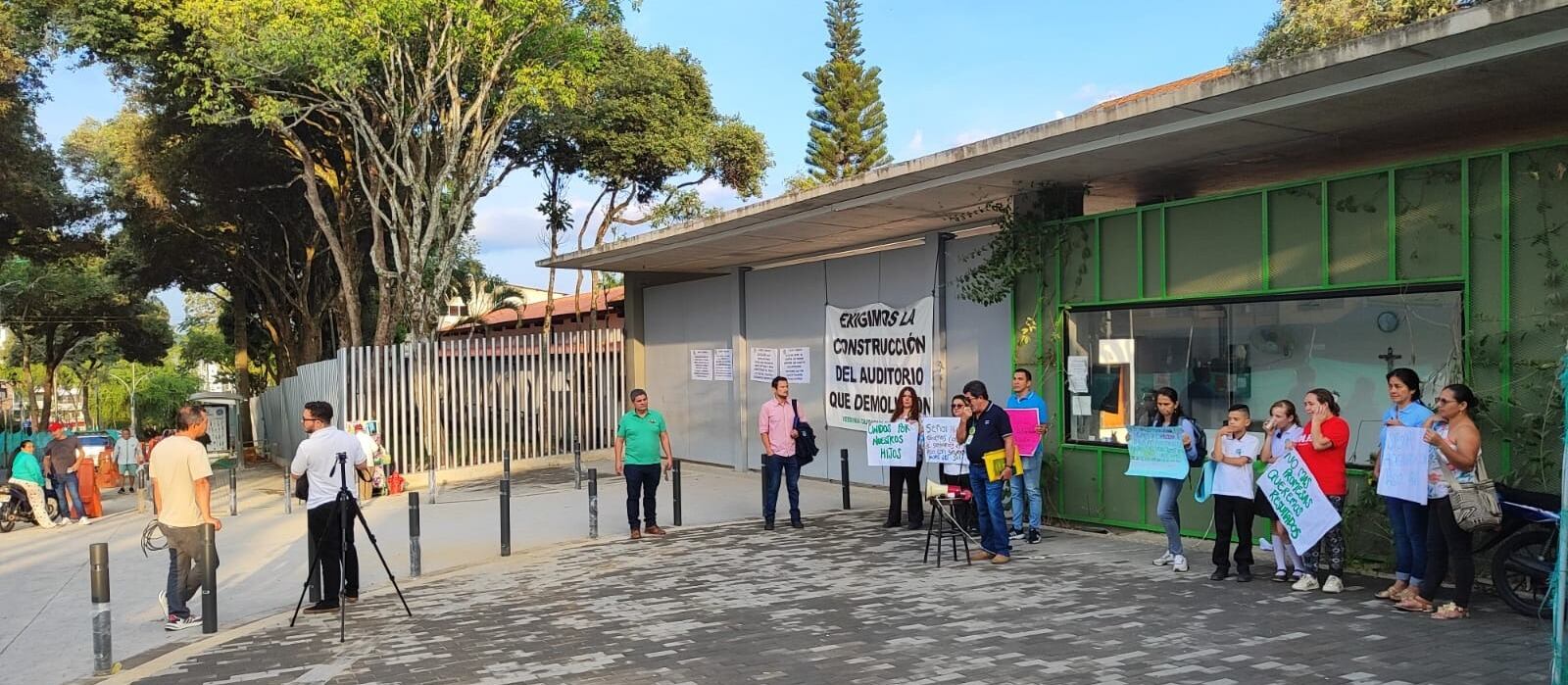 Para la mañana de este martes 13 de febrero, padres de familia del colegio Dámaso Zapata, también conocido como el Tecnológico, se dieron cita para un plantón para pedirle al alcalde de Bucaramanga, Jaime Andrés Beltrán, suspenda el convenio con Findeter para las obras de mejoramiento en tres instituciones públicas, incluida esta.