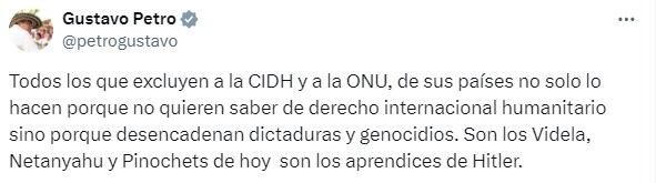 “No le haremos caso a sus conversaciones, aunque son peligrosas, porque hay mucha gente radical contra el presidente Gustavo Petro y podría ser un llamado también a atentar contra las instancias internacionales que tienen asiento en Colombia. Eso me preocupa”, afirmó Quiroga.