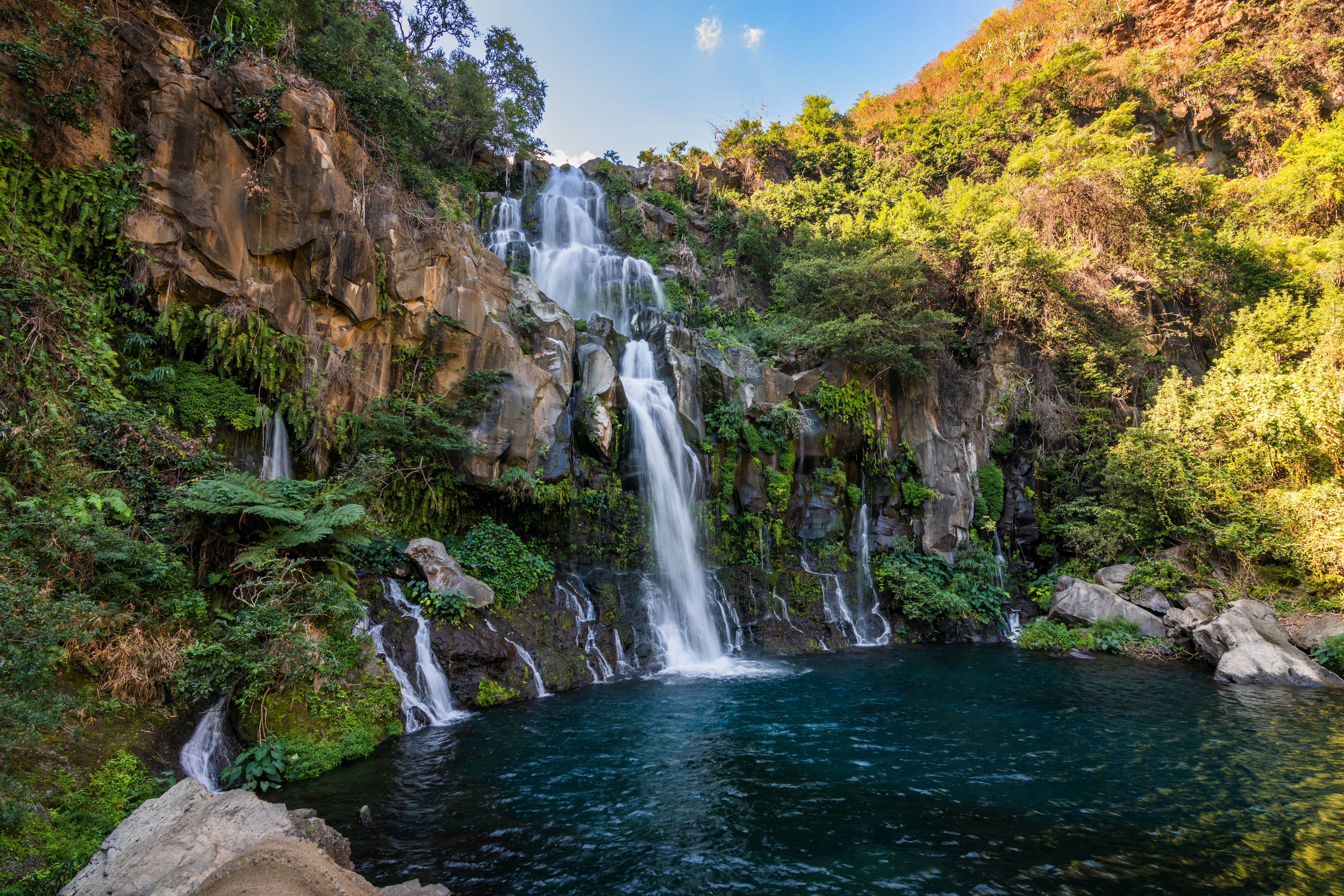 Vista de una cascada en la isla Reunión (Foto vía GettyImages) / Michaela Brandl / 500px