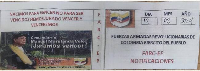 “Tiene la firma de un señor ‘Tornillo’ y un señor ‘Calarcá’. Desconocemos si son comandantes de disidencias que hoy operan en la zona y no sé si ‘Calarcá’ se refiera al que le acaban de levantar orden de captura. Eso lo definirán las investigaciones de la Fiscalía”, agregó Velásquez.