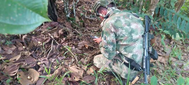“Así mismo, y en atención a las denuncias de la comunidad de la vereda Villa Catalina La Torre, en Puerto Guzmán, Putumayo, tropas del Comando Operativo de Estabilización y Consolidación Júpiter llegaron hasta el lugar para verificar la situación, hallando y destruyendo seis minas antipersona y tres granadas de 40 milímetros en la escuela rural mixta sede La Torre, colocando en riesgo la integridad de niños, niñas y adolescentes del sector, vulnerando los derechos humanos e infringiendo el derecho internacional humanitario”, dijo el Ejército.