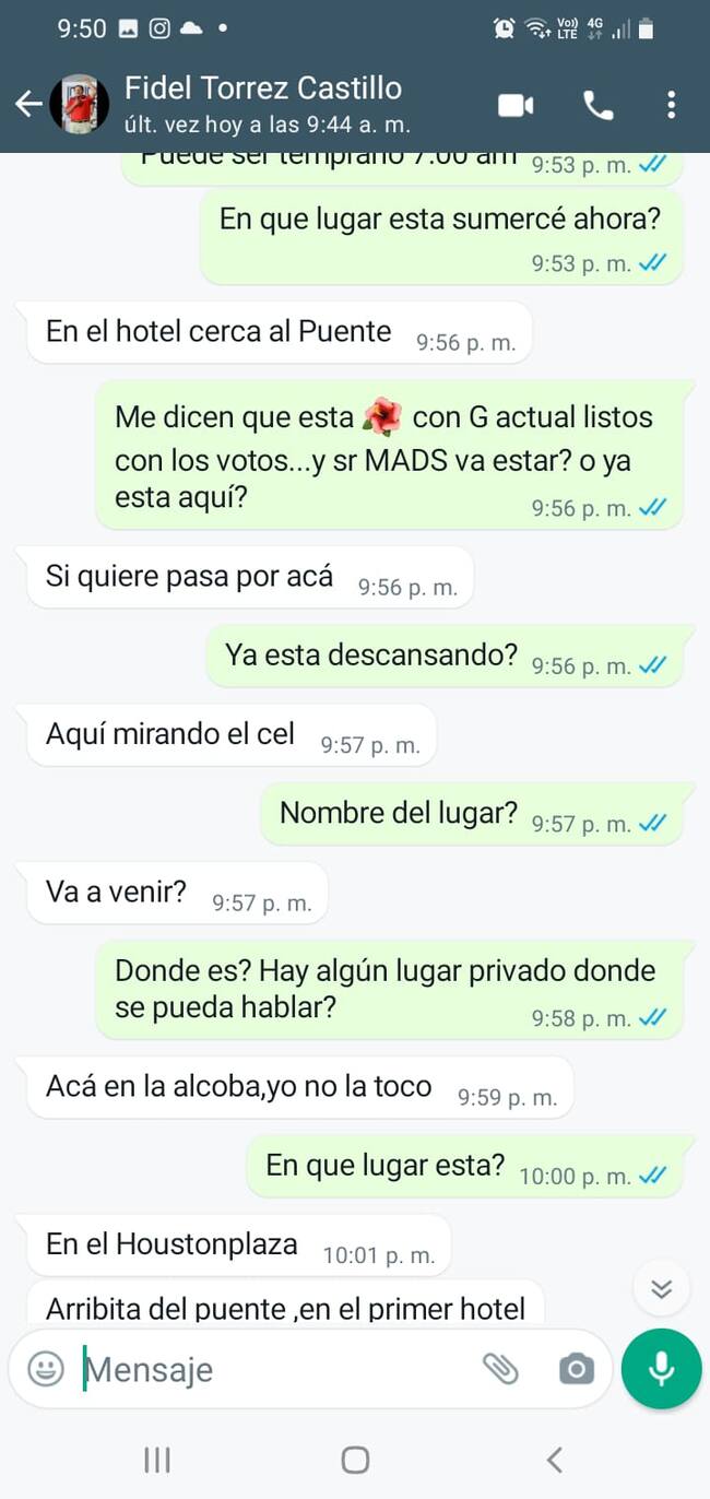 En esa misma línea señaló que le “empezó a decir palabras seductoras, invitándome a hoteles, invitándome a viajar con él, una serie de cosas que uno como mujer quisiera que no le pasara, pero desafortunadamente en estos procesos eso sucede (…) sin embargo yo puse esa manifestación ante una persona de orden nacional y le llamaron la atención, pero después de eso empezó a desaparecerse, a no ayudarme ni apoyarme”.