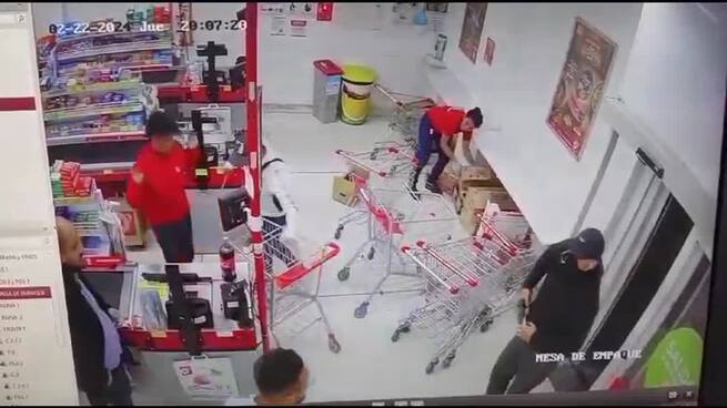 El video evidencia claramente la peligrosa escena, comenzando con la entrada del primer delincuente, quien portaba un arma y amenazó al cajero, forzándolo a levantar las manos y apartarse. Los clientes que se encontraban en la fila no dudaron en alejarse, mientras que una empleada, al percatarse de la situación, se apresuró a dirigirse a la parte trasera del establecimiento visiblemente asustada.