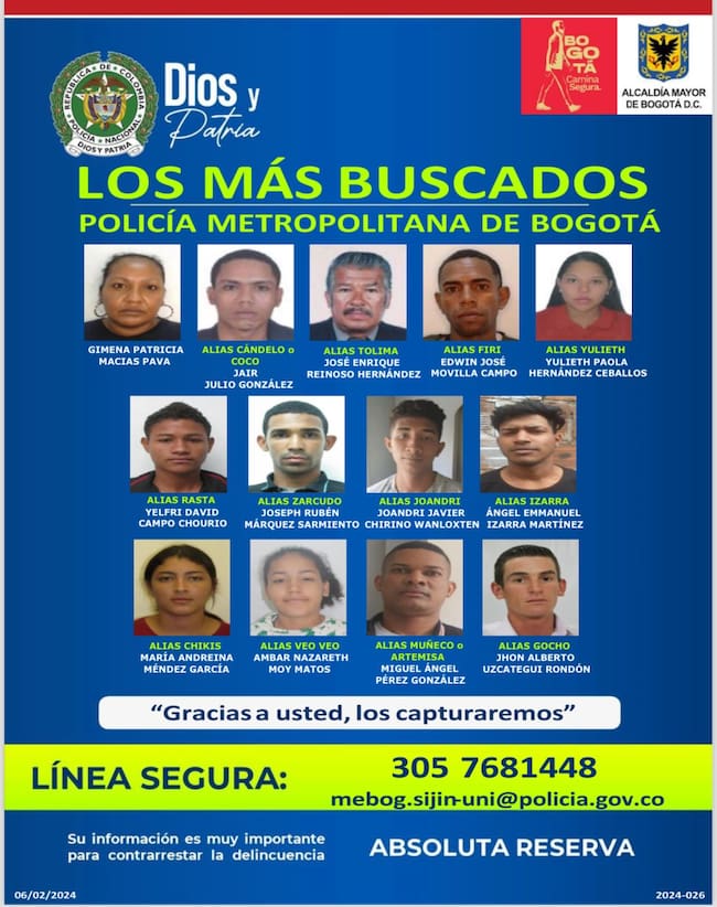 Con órdenes de captura ya emitidas por la Fiscalía General de la Nación, estos individuos representan un riesgo para la seguridad pública. La presentación del “Cartel de los Más Buscados” tiene como objetivo movilizar a la comunidad en la identificación y denuncia de estas personas, contribuyendo así al esfuerzo colectivo por mantener la paz en la capital.