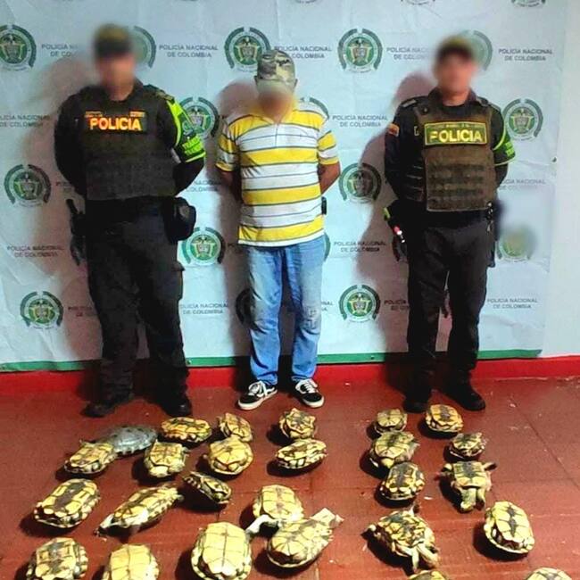 “El procedimiento policial se llevó a cabo en la vía que del corregimiento La Ye conduce al municipio de Cereté. En el lugar, los uniformados inspeccionaron un vehículo de servicio donde el sujeto se movilizaba como pasajero, encontraron tortugas vivas una sobre otra y amarradas al interior de cajas de cartón. No solo se les dificultaba moverse, sino también respirar”, señaló la Policía del departamento de Córdoba, en cabeza del coronel Jhon Fredy Suárez.