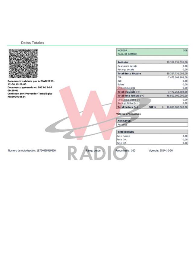 Sigue La W se puso en la tarea de revisar ítem por ítem de este documento y encontró serías irregularidades que demuestran que el documento no es legal y tiene alterados los precios, llama poderosamente la atención que dentro de la documentación pública oficial del proceso millonario de compra se adjunte un documento con irregularidades como no contar con la numeración ni el QR exigido por la DIAN, ni tampoco que sea una cotización legal.