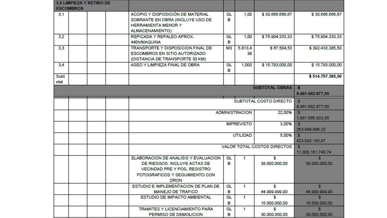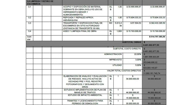 La Alcaldía dio a conocer que el desmonte tendrá un costo de $11 mil millones, contará con interventoría de un equipo especializado de la Secretaría de Infraestructura, quien la hará a través de un mecanismo de supervisión especializada de expertos.