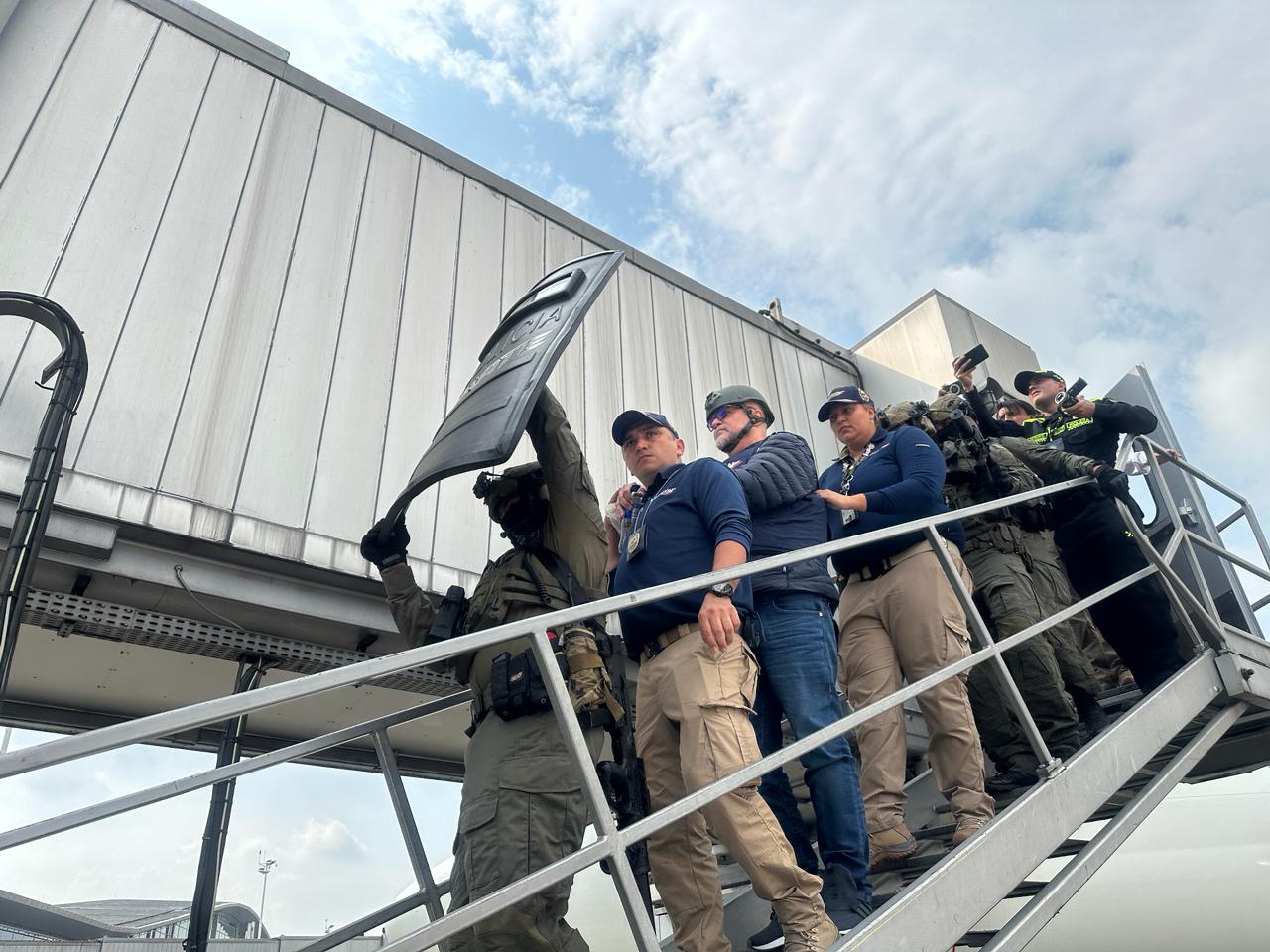 Bajo un fuerte dispositivo de seguridad, Mancuso fue recibido por Fernando García, director de Migración Colombia, quien realizó el proceso de legalización para su entrada al país.