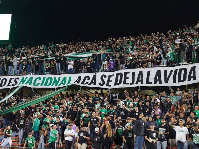 AMDEP7520. MEDELLÍN (COLOMBIA), 28/02/2024.- Hinchas de Atlético Nacional asisten a un partido de segunda fase de la Copa Libertadores entre Atlético Nacional y Club Nacional este miércoles, en el estadio Atanasio Girardot en Medellín (Colombia). EFE/ Luis Eduardo Noriega Arboleda / Luis Eduardo Noriega Arboleda (EFE)