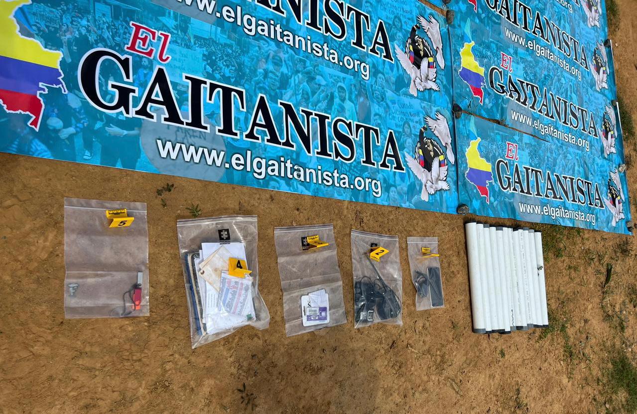 Finalmente, se indicó que durante la operación se incautaron 12 pendones alusivos a las Autodefensas Gaitanistas de Colombia, 2 USB, un radio de comunicaciones, un celular, cuadernos y “documentos con información referente a este grupo ilegal, con los que pretendía influir en menores de edad para pertenecer a las filas de esta organización delincuencial”.