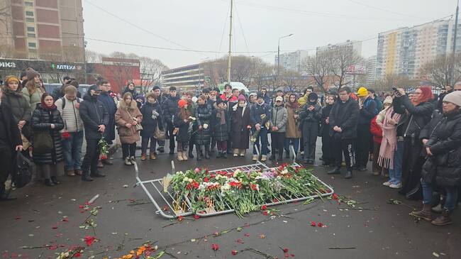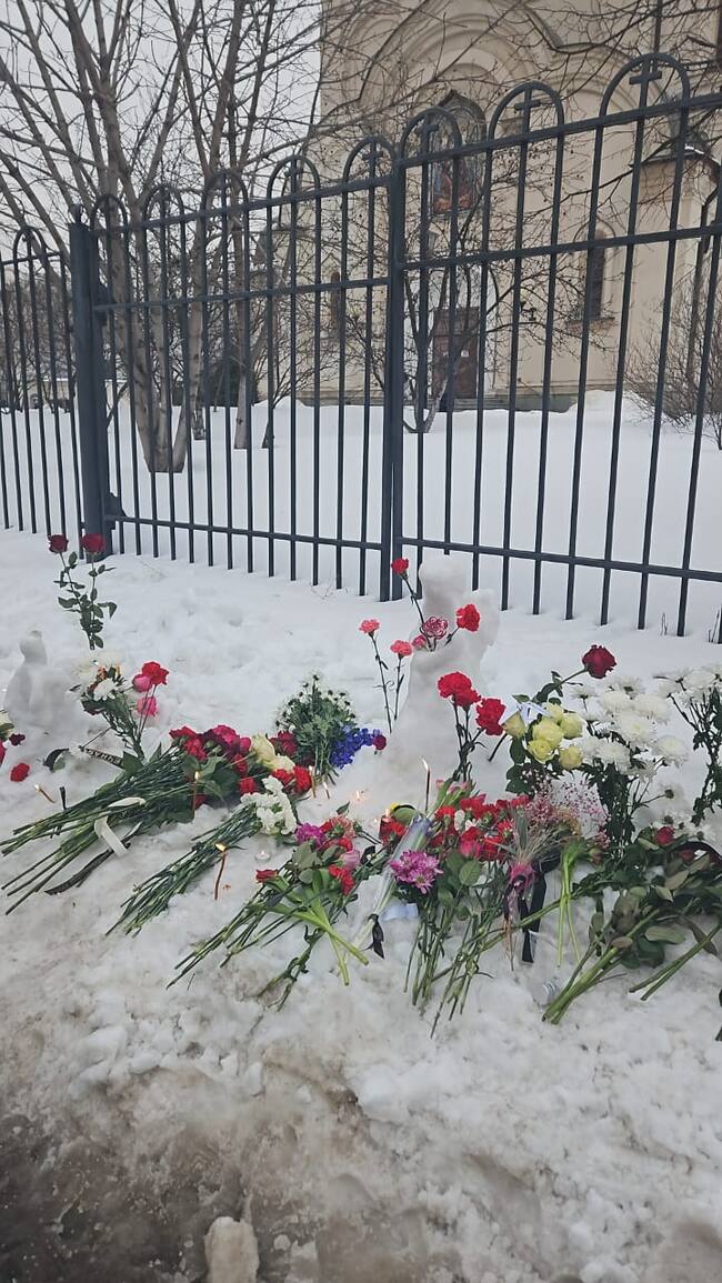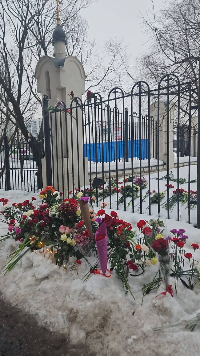 Decenas de miles de seguidores de Navalni, que no pudieron acceder al interior de la iglesia para despedirse del opositor, acudieron al cementerio de Borísovo con flores en mano en espera de poder acercarse su tumba.