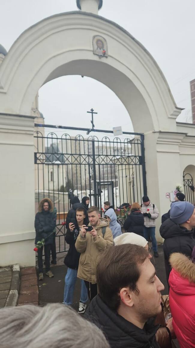 Los moscovitas también pidieron perdón a los padres de Navalni, cuando estos abandonaban la iglesia tras el velatorio.