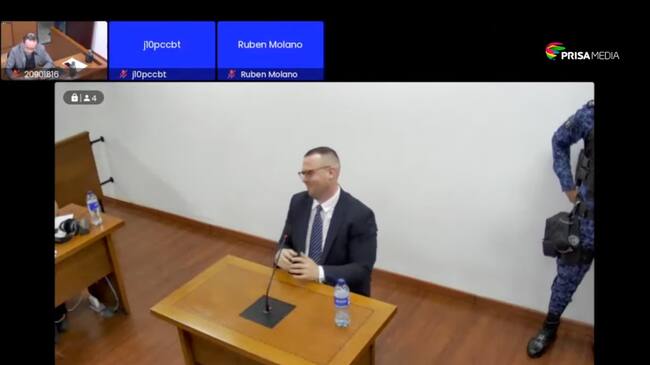 Vestido de negro, con camisa blanca y corbata azul oscuro de rayas, el estadounidense declaró en el juicio que se adelanta en su contra por el feminicidio de la reconocida DJ, ocurrido el domingo 22 de enero de 2023, en un apartamento del norte de Bogotá.