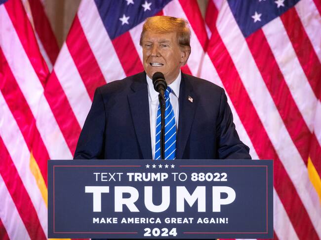Palm Beach (United States), 06/03/2024.- Former US President Donald Trump speaks to supporters during the Super Tuesday Election Night Watch Party in Mar-a-Lago, Palm Beach, Florida, USA, 05 March 2024. On 'Super Tuesday,' voters in 16 states and one US territory cast their ballots for presidential candidates in the 2024 United States primary elections. Trump is running against Former South Carolina Governor Nikki Haley for the Republican presidential primary. (Elecciones, Estados Unidos) EFE/EPA/CRISTOBAL HERRERA-ULASHKEVICH / CRISTOBAL HERRERA-ULASHKEVICH (EFE)