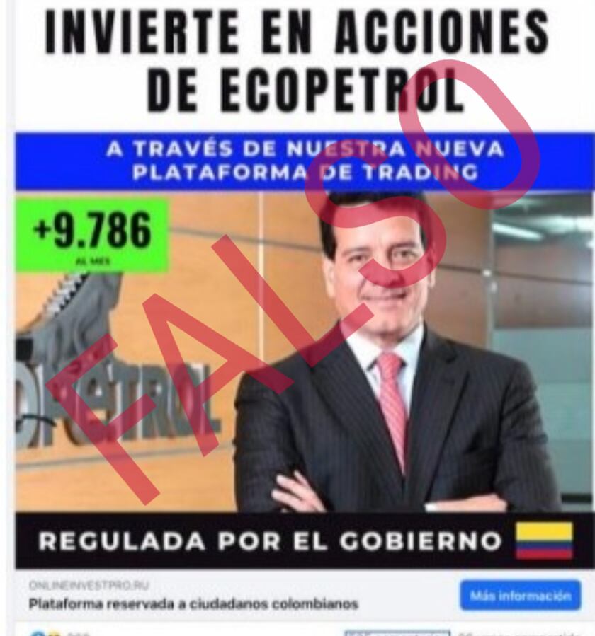 La Bolsa de Valores de Colombia alertó a los ciudadanos para que no caigan en una estafa en la cual utilizan las redes sociales con una foto del expresidente de Ecopetrol.