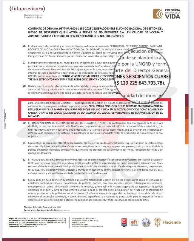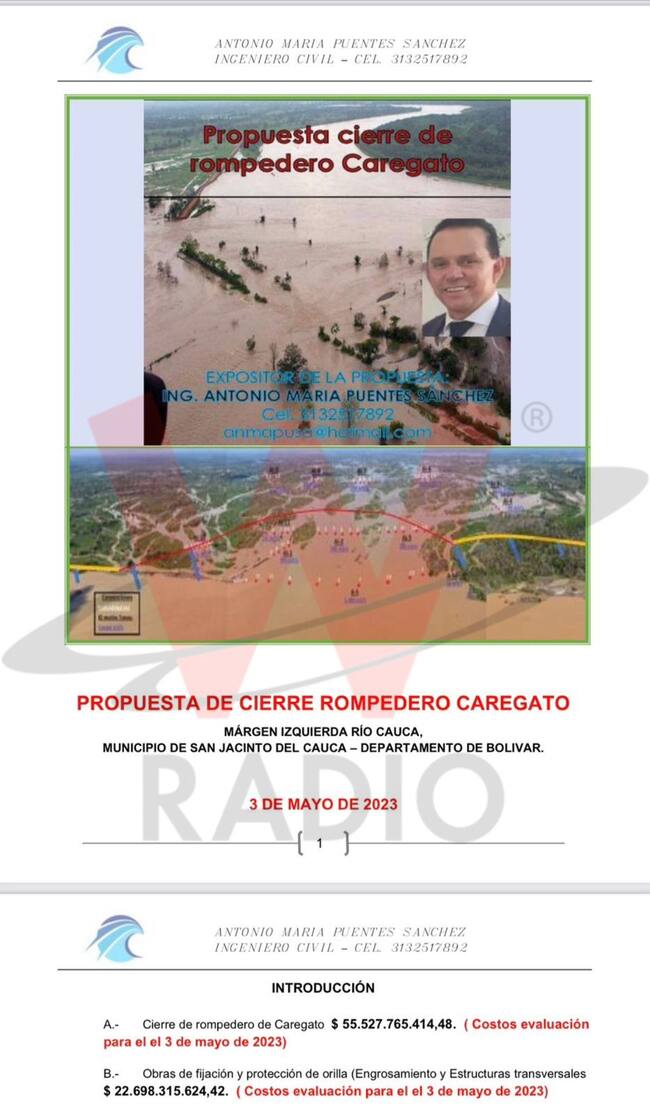 Neiman Estrella Acevedo, presidente de la Corporación para la Defensa de la Región de la Mojana- Codemojana, señaló, en diálogo con Sigue la W, que antes de suscribir el contrato hubo una propuesta presentada por el ingeniero Antonio Puentes en mayo de 2023, por un valor mucho menor y que está nunca se tuvo en cuenta. Además, aseguró que supuestamente se plagió parte de la información contenida en la propuesta para ser presentada el la oferta del consorcio ganador.