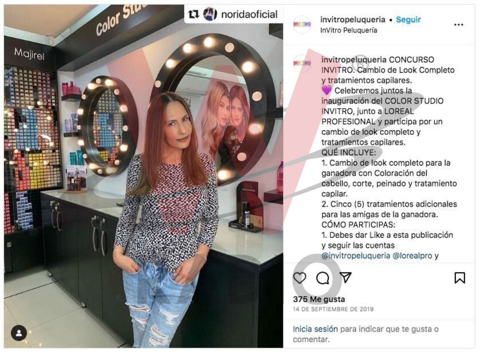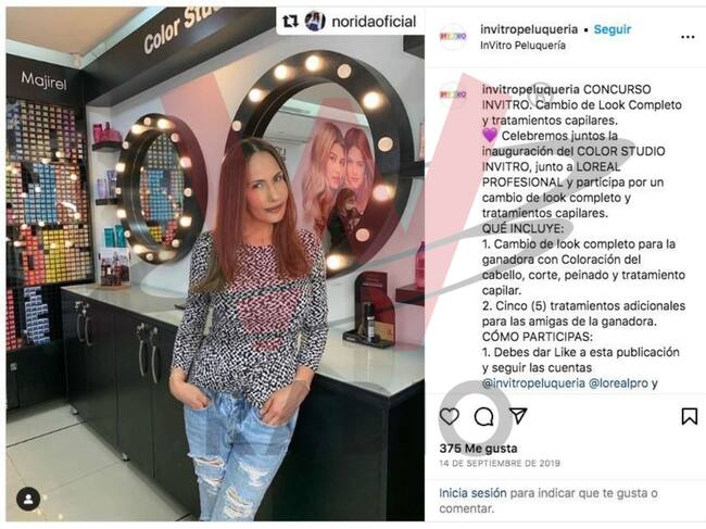 Nórida Rodríguez en 2019 cuando en sus redes promocionaba la peluquería de Arzuaga.