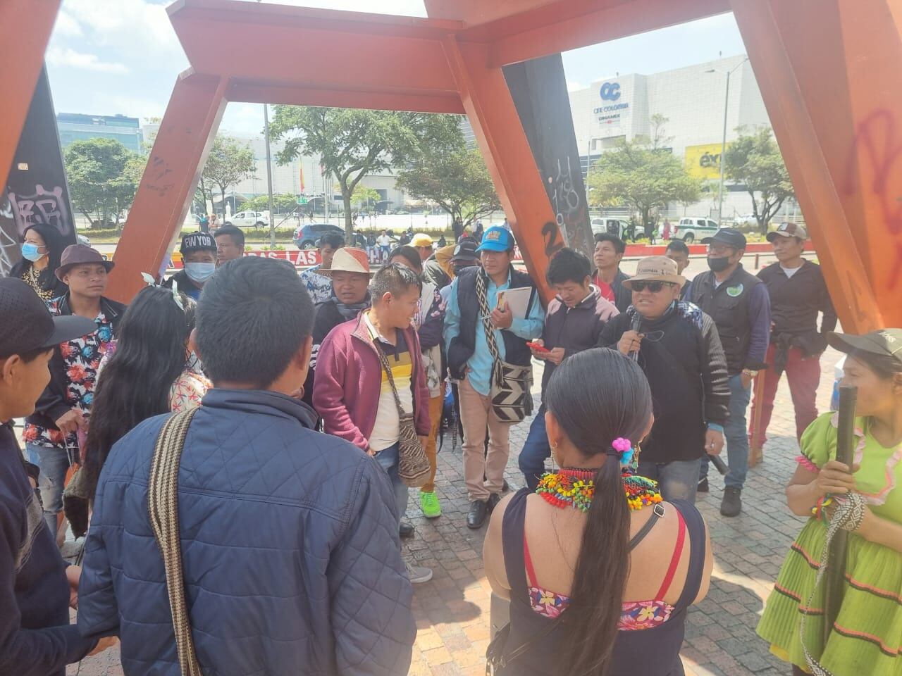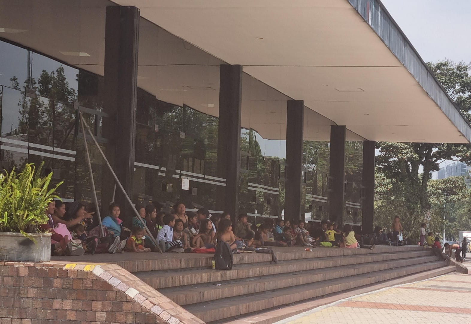 La protesta llegó al edificio de la Secretaría de Educación de Bogotá, donde aproximadamente 50 personas, en su mayoría mujeres y niños de la comunidad Embera, llevaron a cabo un plantón.