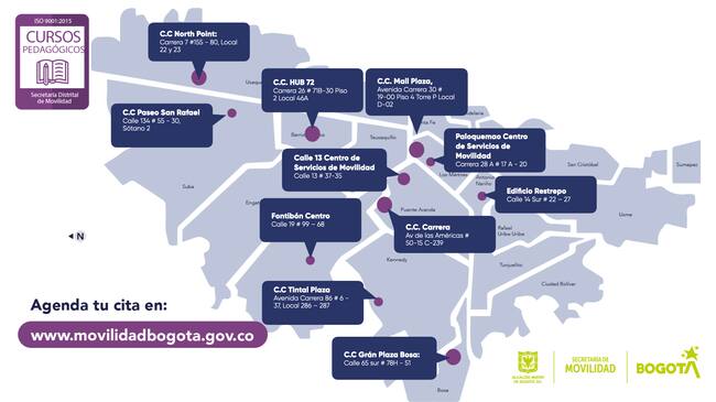 Según datos de la Secretaría de Movilidad de Bogotá, este curso debe realizarse con previo agendamiento y confirmación de fecha en los puntos habilitados en cada localidad, teniendo en cuenta estas especificaciones: