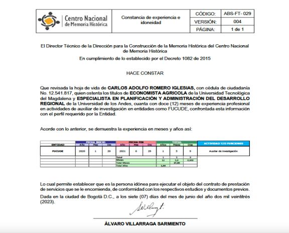 “El aumento en honorarios que se está teniendo para el año 2024 está en un valor mensual de $2.310.536, equivalente a un 43,1 %, valor que es injustificado, sumado a que los entregables que se solicitan no revisten mayor complejidad y que las obligaciones podrían ser asumidas por el personal de planta de la Dirección para la Construcción de la Memoria Histórica” se indicó en la carta entregada a Transparencia.