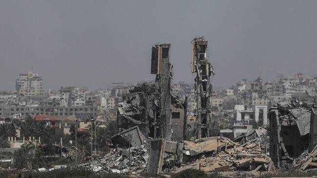 Northern Gaza Strip (---), 01/04/2024.- Destruction in the northern Gaza Strip following Israeli airstrikes, as seen from the southern Gaza Strip, 01 April 2024. More than 32,700 Palestinians and over 1,450 Israelis have been killed, according to the Palestinian Health Ministry and the Israel Defense Forces (IDF), since Hamas militants launched an attack against Israel from the Gaza Strip on 07 October 2023, and the Israeli operations in Gaza and the West Bank which followed it. EFE/EPA/MOHAMMED SABER / MOHAMMED SABER (EFE)