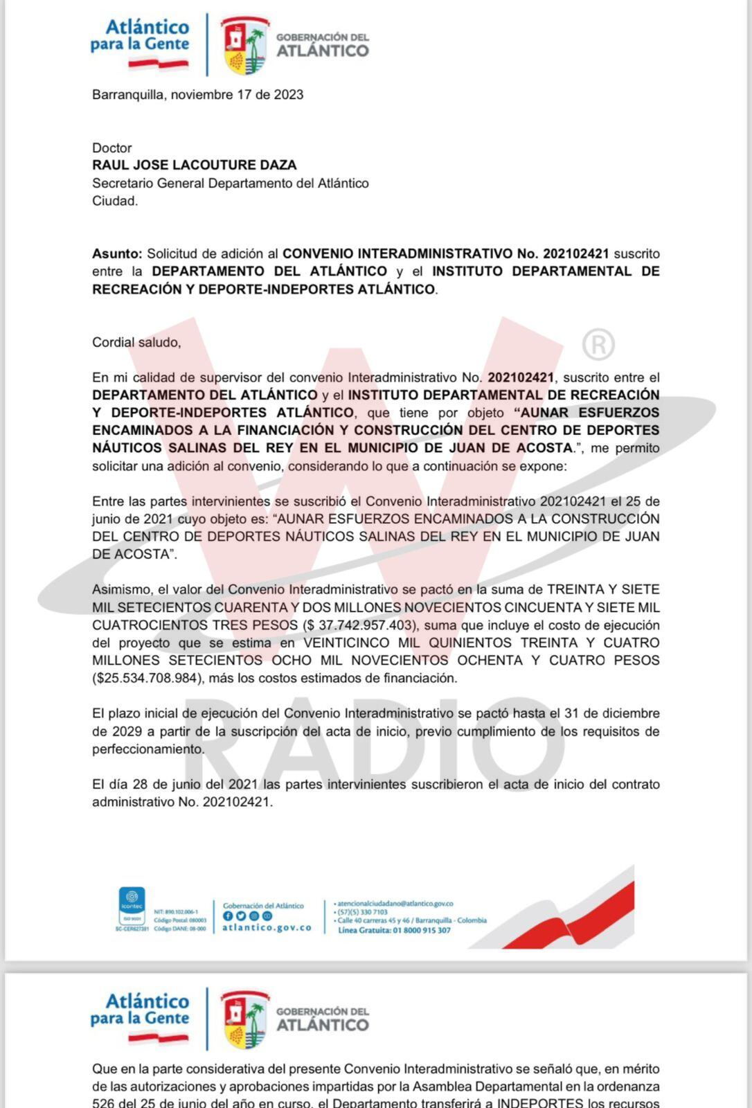 A través del convenio interadministrativo No. 202102421 la autoridad departamental destinó la suma de 37.742.957.403 millones de pesos para la ejecución de las obras ubicadas en Salinas del Rey, en jurisdicción del municipio de Juan de Acosta.