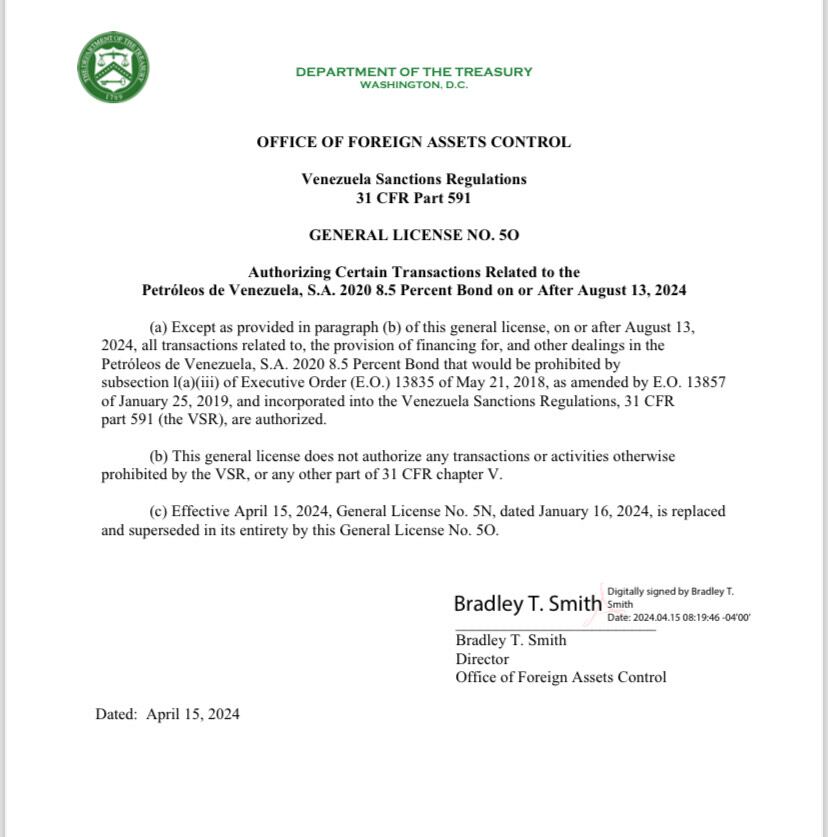 La licencia general del Tesoro 5-O prohíbe las transacciones relacionadas con los bonos 2020 en los próximos meses ya que estaban garantizados con una parte del capital de Citgo
