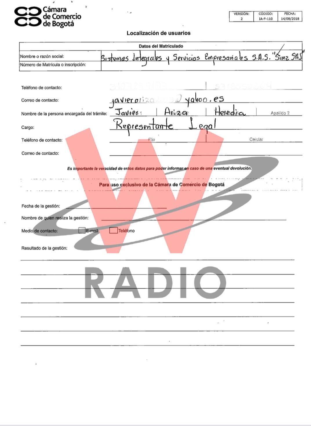 El 19 de febrero de 2019 se constituyó legalmente la empresa Sirez SAS. Su representante legal inicialmente fue Javier Enrique Ariza y así quedó registrado al momento de cancelar el valor para la matrícula mercantil; sin embargo, hoy en día figura John Freddy Melo Echavez como su representante y la Junta directiva, conformada por Álvaro Enrique Merchán Ramírez, Harold Stiven García Cabrera y Omar Hernando Ballesteros.