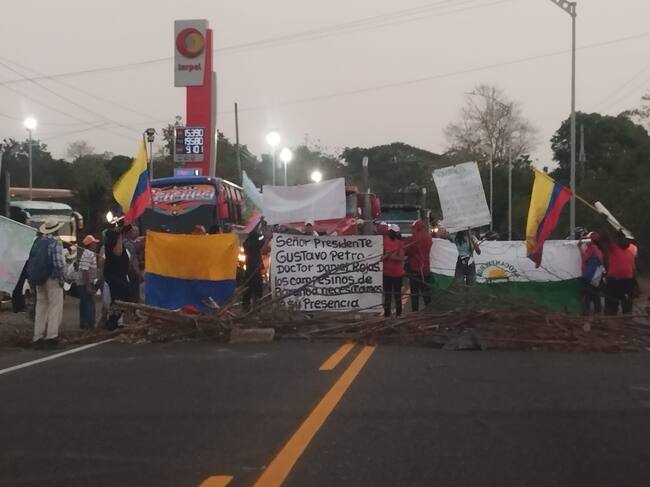 Protesta de campesinos del Atlántico en la Vía Cordialidad a la altura del municipio de Baranoa./ Foto: Suministrada