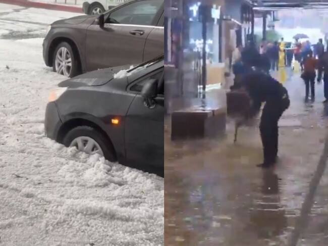 En imágenes compartidas en redes sociales, se puede apreciar como la caída de granizo y la inundación de las calles afecta el tráfico en distintos puntos de la ciudad paralizando el tráfico.