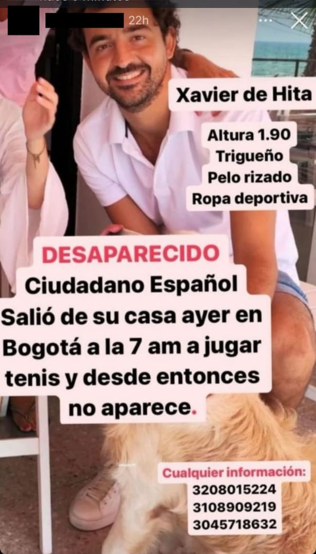 Xavier de Hita salió de su residencia en el barrio El Chicó en Chapinero con rumbo al norte de Bogotá para disfrutar de una partida de tenis. Sin embargo, no regresó a casa.