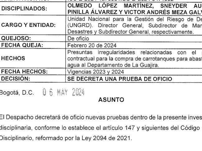 La prueba se pidió luego de que los contratistas de la empresa Impoamericana Roger S.A.S. afirmaran tener información detallada y relevante de los pagos efectuados con ocasión del contrato para la compra de los 40 carrotanques para La Guajira, que suscribió la Unidad de Gestión del Riesgo.