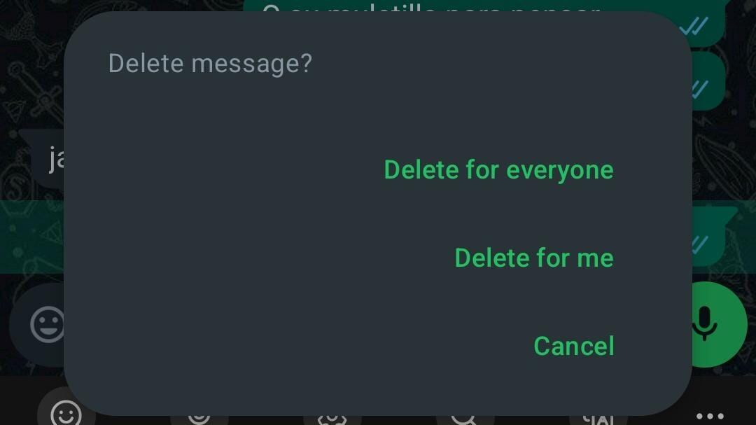 Muchas personas que desean borrar un mensaje en un chat de WhatsApp eligen, por error, la opción ‘Eliminar solo para mí' en vez de ‘Eliminar para todos’.