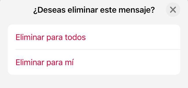Si se selecciona ‘Deshacer’, el mensaje borrado volverá a aparecer en la conversación, por lo que el usuario podrá –ahora sí– eliminarlo para todos los participantes del chat.