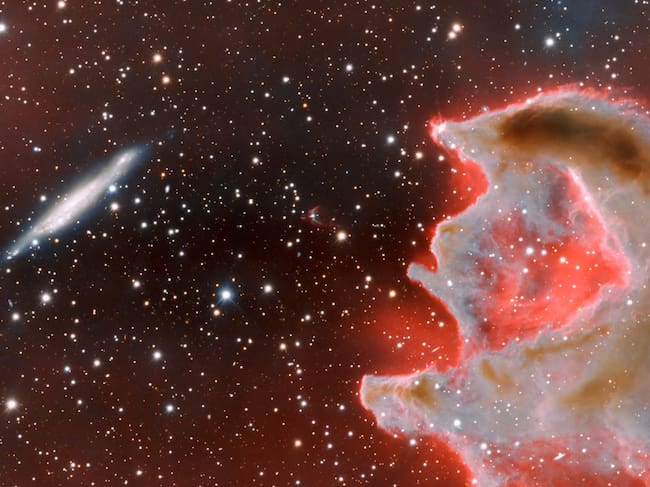 La galaxia espiral que el CG4 parece estar alcanzando se llama ESO 257-19, y en realidad está a más de cien millones de años luz de la supuesta mano, como explican los astrónomos.