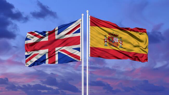 Bandera de España y Reino Unido. Foto: Getty Images / issam elhafti