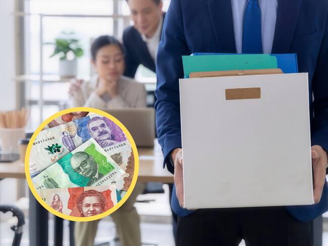 Hombre despedido sin justa causa. En el círculo, dinero colombiano (GettyImages)