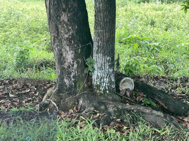 Soldados del Ejército Nacional, al llegar a la zona, ubicaron este objeto que se encuentra cerca a un árbol con un sistema de conexión a través de cables.