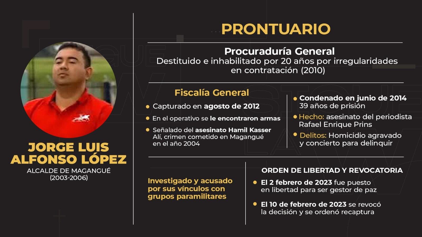 Jorge Luis Alfonso López fue alcalde de Magangué en el periodo 2003-2006, y es hijo de Enilse López, la empresaria del chance que en vida fue conocida con el alias de ‘La Gata’.
