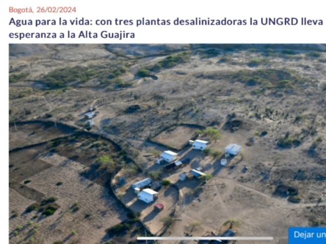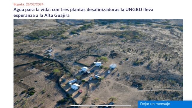 Aunque el anuncio de este proyecto se hizo en plena campaña electoral, solo hasta este año 2024 la Unidad Nacional para la Gestión del Riesgo de Desastres entregó un contrato por más de 42 mil millones de pesos al Consorcio Plantas Desalinizadoras Uribia 2023 para la construcción de tres plantas desalinizadoras, con el objetivo de lograr agua potable en los corregimientos de Bahía Honda, Irraipa y Puerto López en La Guajira, además de otro proyecto similar para Puerto Estrella.