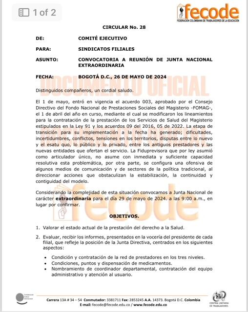 “No puedo pasar por desapercibido la postura del sector mayoritario del Ejecutivo de Fecode, que se opuso hasta faltando un mes para terminar la prórroga, lo cual, como representantes del gremio, políticamente, son los responsables de no haber iniciado la preparación para la implementación desde octubre de 2023 cuando el presidente Petro hizo la declaración de que el magisterio tendría las mejores clínicas y hospitales y podíamos escoger libremente las IPS, es importante conocer la historia de las reales causas, porque en el discurso son petristas, pero en la práctica le sabotean y le dan más argumentos a la ultraderecha para pretender desprestigiar al gobierno y recuperar el poder”, escribió el presidente Petro.