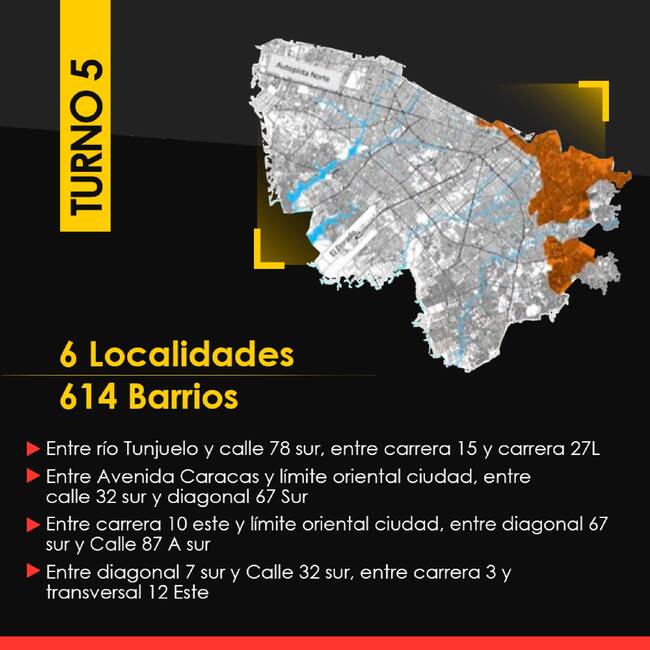 Las localidades afectadas son: La Candelaria, Ciudad Bolívar, Rafael Uribe Uribe, San Cristóbal, Santa Fe y Tunjuelito.