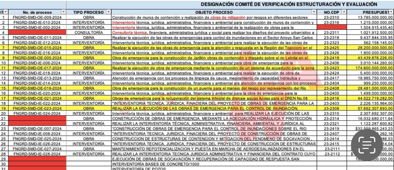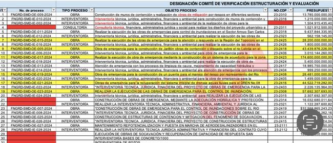 Sigue La W tiene en su poder la matriz de contratos de obra y de interventoría entregados en febrero de 2024, la cual evidencia cómo fueron repartidos esos 700 mil millones de pesos girados por el Ministerio de Hacienda.