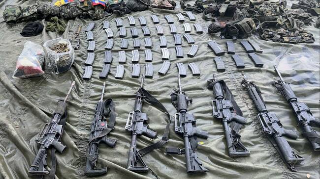 En la acción se logró la incautación de siete fusiles, dos armas tipo revólver y 25 equipos de campaña. Crédito: Cortesía Ejército Nacional.