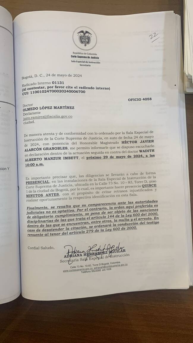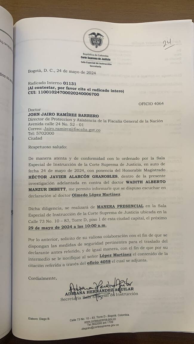 Estos son los documentos con los que la Corte Suprema muestra que la citación sí se hizo el pasado 24 de mayo: