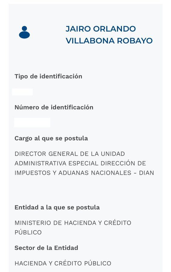 Debido a esto, el reemplazo de Reyes en la dirección de la DIAN será Jairo Orlando Villabona Robayo, de quien se había publicado su hoja de vida, hace algunos días, a través de la página de la Presidencia de la República.