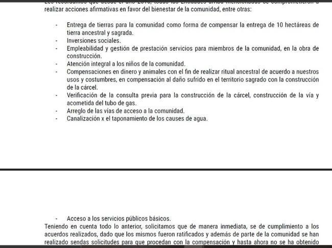 Por otra parte, los Walinay, dijeron que el gobierno y las autoridades locales, como la gobernación y la alcaldía no cumplieron con lo pactado para la entrega de las 10 hectáreas donde se construiría la cárcel y por eso detuvieron la obra.