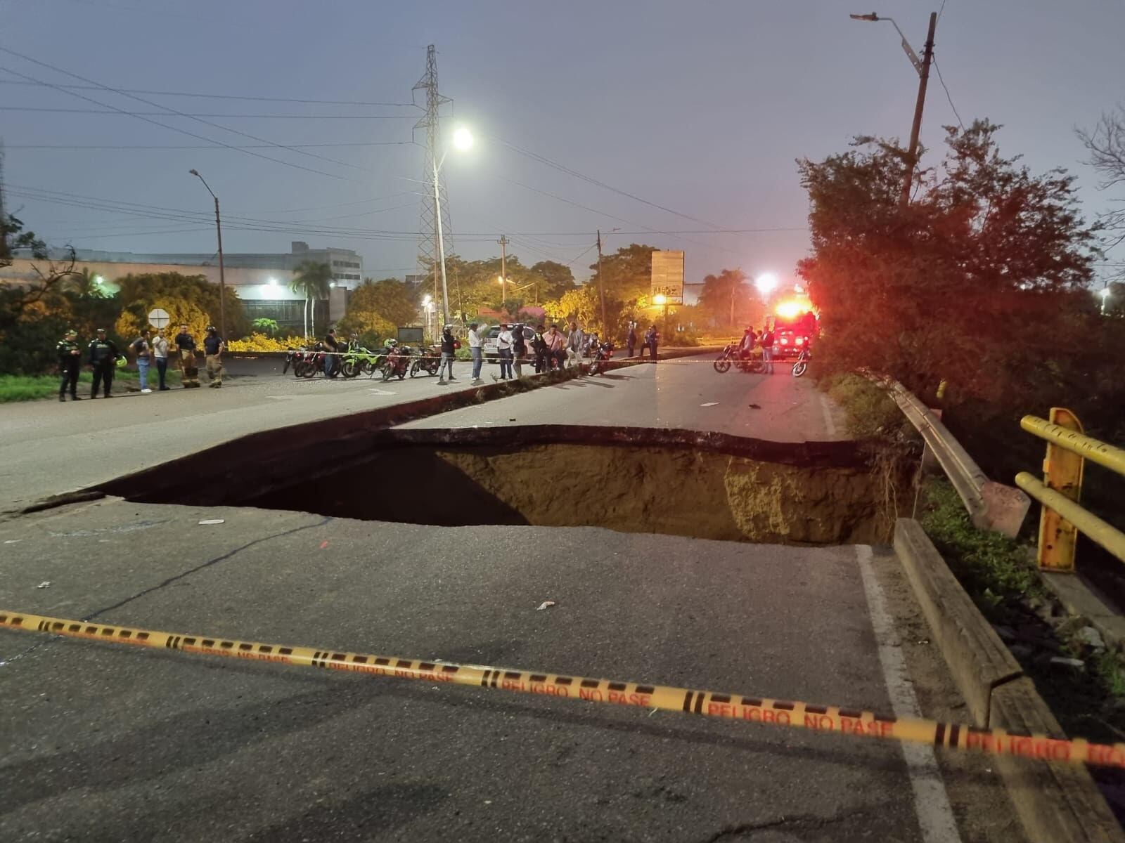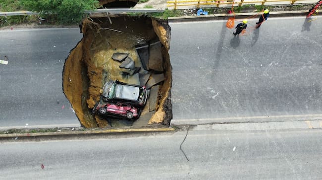 En la estructura surgió un cráter de cinco metros de profundidad que se llevó a dos vehículos y una motocicleta que transitaban por la vía.